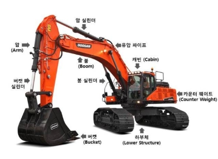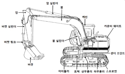 1. 본체(Main Body): 운전실, 유압 펌프, 엔진 등이 탑재된 중심부입니다. 사람이 직접 조작하거나 자동으로 제어되는 부분이죠.