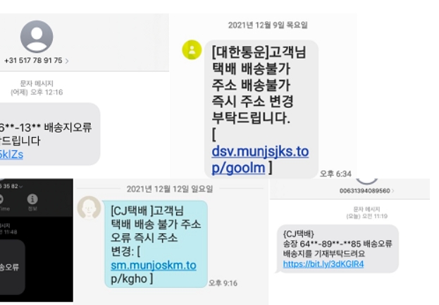 명절 기간에는 택배 물량이 급증하면서 자연스럽게 배송 알림 문자도 많이 오게 됩니다. 그런데 이 틈을 노려 마치 실제 택배사에서 보낸 것처럼 꾸며진 문자 메시지 링크, 혹은 택배기사 사칭 전화가 유입되고 있다는 신고가 많아지고 있습니다.