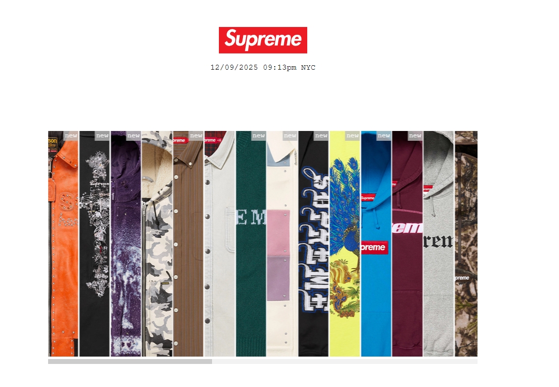 슈프림은 보통 목요일에 글로벌 공홈 기준으로 프리뷰가 뜨고, 한국은 토요일 오전에 실제 구매가 가능합니다.