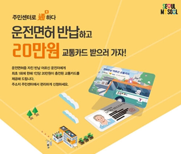 서울시는 올해도 어르신 면허 반납 교통카드 지원사업을 이어갑니다. 운전면허를 자진 반납한 어르신에게 20만원이 충전된 선불형 교통카드를 지급하는 방식입니다.