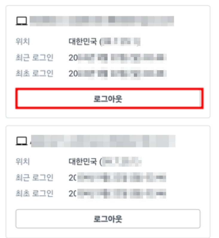 IP 주소나 로그인 시간 등을 확인하고, 낯선 기록이 보일 경우 화면을 캡처해 보관해 두는 것을 추천드립니다.