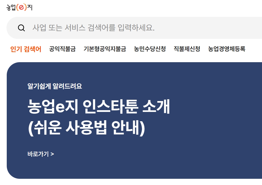 온라인 신청은 농업 관련 서비스 사이트인 농업e지에서 진행할 수 있습니다.